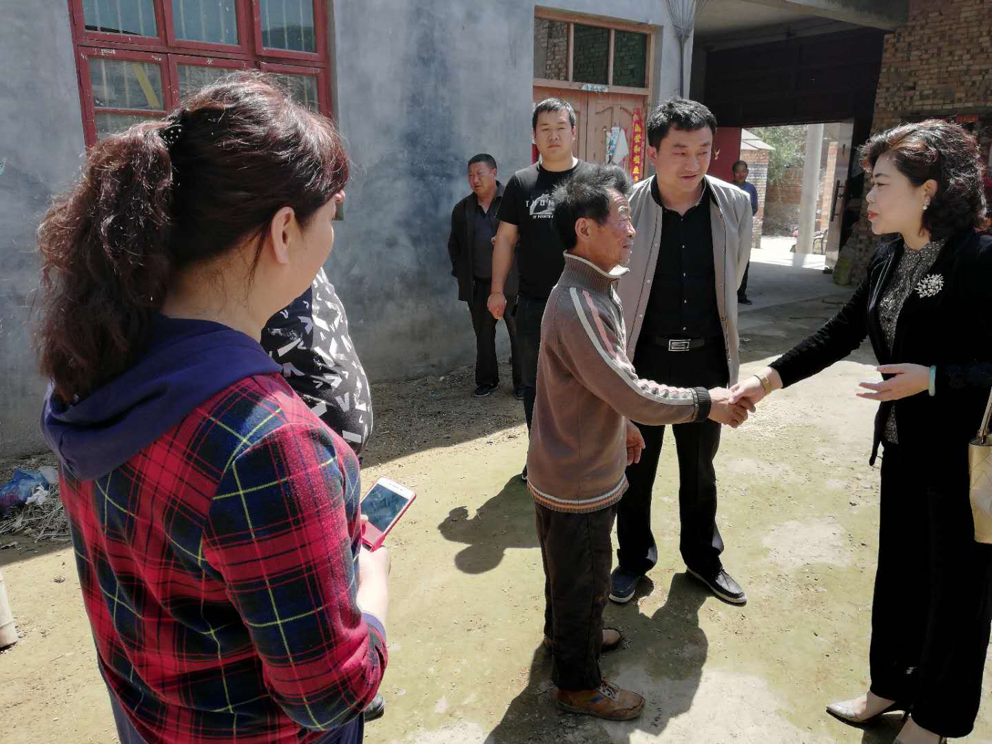 4 月19 日,民建新乡市牧野支部会员在支部主委王佩的带领下到封丘县曹岗乡鹿合村开展助力精准扶贫捐赠活动。