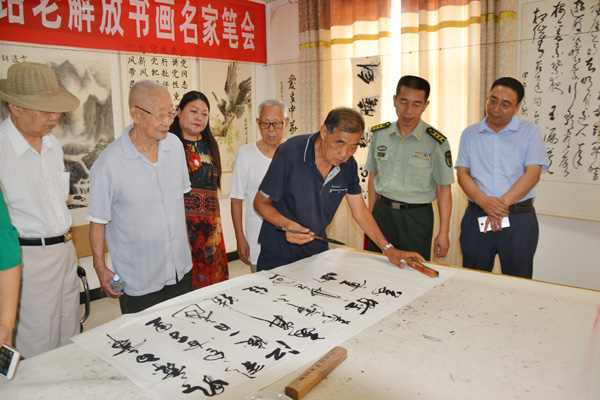 活动现场,书画名家们挥毫泼墨、妙绘丹青,以表达对部队离退休老干部的尊敬和祝福。