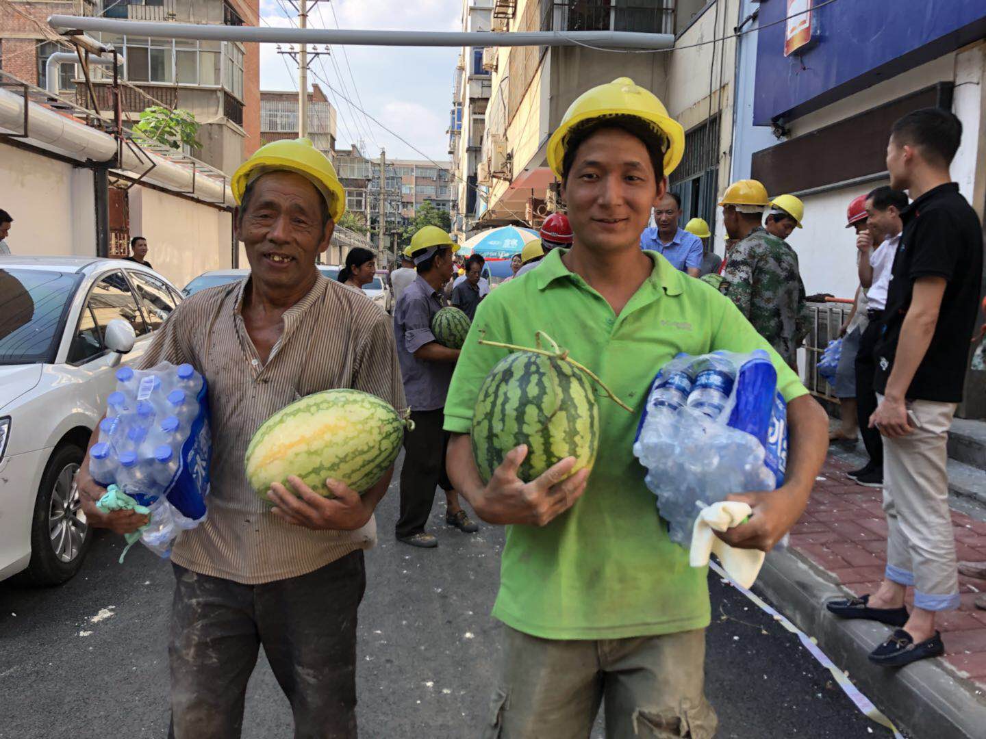 近期,全市气温持续升高,酷热难当。虽然烈日炎炎,但也难挡“百城提质”工程一线建筑工人的工作热情!会员们为建筑工人亲手送上矿泉水、防暑保健品、毛巾及西瓜等防暑降温用品,使建筑工人们切身感受到夏日里的一缕清凉?;嵩泵呛拖钅扛涸鹜窘辛私涣?,听取了工程进展情况介绍?;嵩泵潜硎荆醇幌呓ㄖと嗽诿迫鹊钠蛳陆凶饕?,为了完成所有建设任务,为广大市民提供更舒适的居住条件、更优美的环境,冒着酷暑整修城区道路,美化墙体立面,改造提升老旧小区,建设了一大批街心游园和健身活动场所,对他们的辛勤付出表示感谢,并叮嘱他们在完成施工任务的同时要提高安全防范能力和自我?;ひ馐?,注意工地施工安全,合理调整施工时间段,注意防暑降温。
