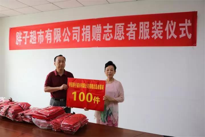 为了传播爱心正能量,关爱慈善志愿者,8月10日下午,许昌民建会员、许昌胖子超市有限公司董事长王卫红向许昌市慈善总会捐赠志愿者马甲100件。