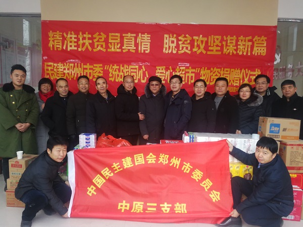 寒风凛冽,大雪纷飞, 12月27日下午,在元旦来临之际,民建郑州市委专职副主委沈立承、秘书长百金丽及中原三支部主委赵广全和会员们一行冒雪驱车来到全市统一战线定点扶贫村——寺沟村开展爱心物资捐赠活动,并走访贫困户,看望慰问驻村工作队。