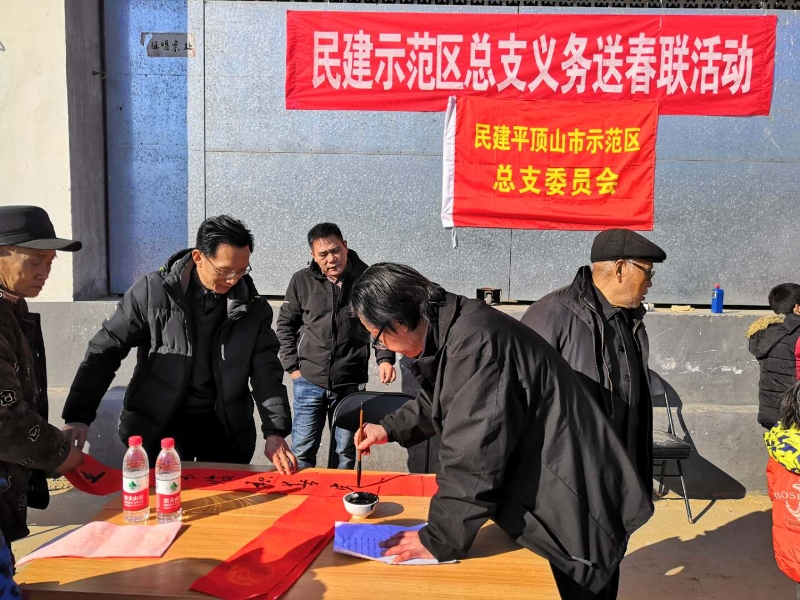 民建平顶山市示范区总支开展送春联进乡村活动