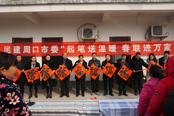 为贯彻落实中共十九大精神,让文化走进群众,在中华民族传统佳节——春节来临之际,2019年1月29日,民建周口市委在会员企业举办义写春联赠送活动。民建周口市委秘书长郑立冬参加活动。
