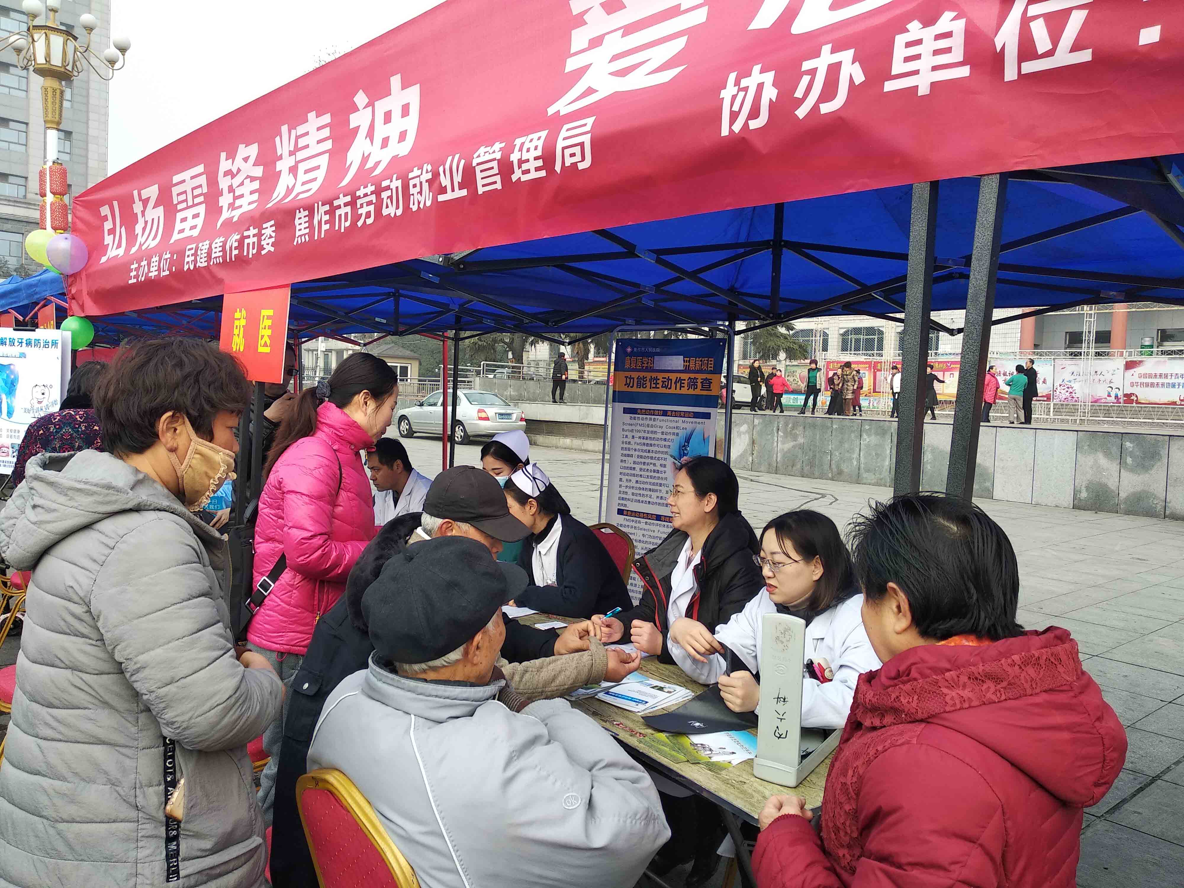 上午8点半,在焦作市东方红广场以“弘扬雷锋精神,爱心奉献社会”为主题的大型便民利民活动正式开始。民建市委组织会员中的专业人员就法律、财税、公证、教育、心理咨询、医疗、康复等相关民生问题开展咨询服务和义诊活动。在活动现场,来自市人民医院和解放牙病防治所的医务工作者忙碌着为前来咨询和问诊的市民们发放的有关身体健康和牙科保健知识的宣传资料,并免费为群众量血压、测血糖、检查口腔,详细耐心的为市民解答疑难问题。市人民医院内六科主任、民建会员赵菊珍还为患者约定时间到医院就诊。服务现场人头攒动,志愿者们忙前忙后,他们热情细致的服务受赢得了广大市民的赞誉,取得了良好的社会反响。