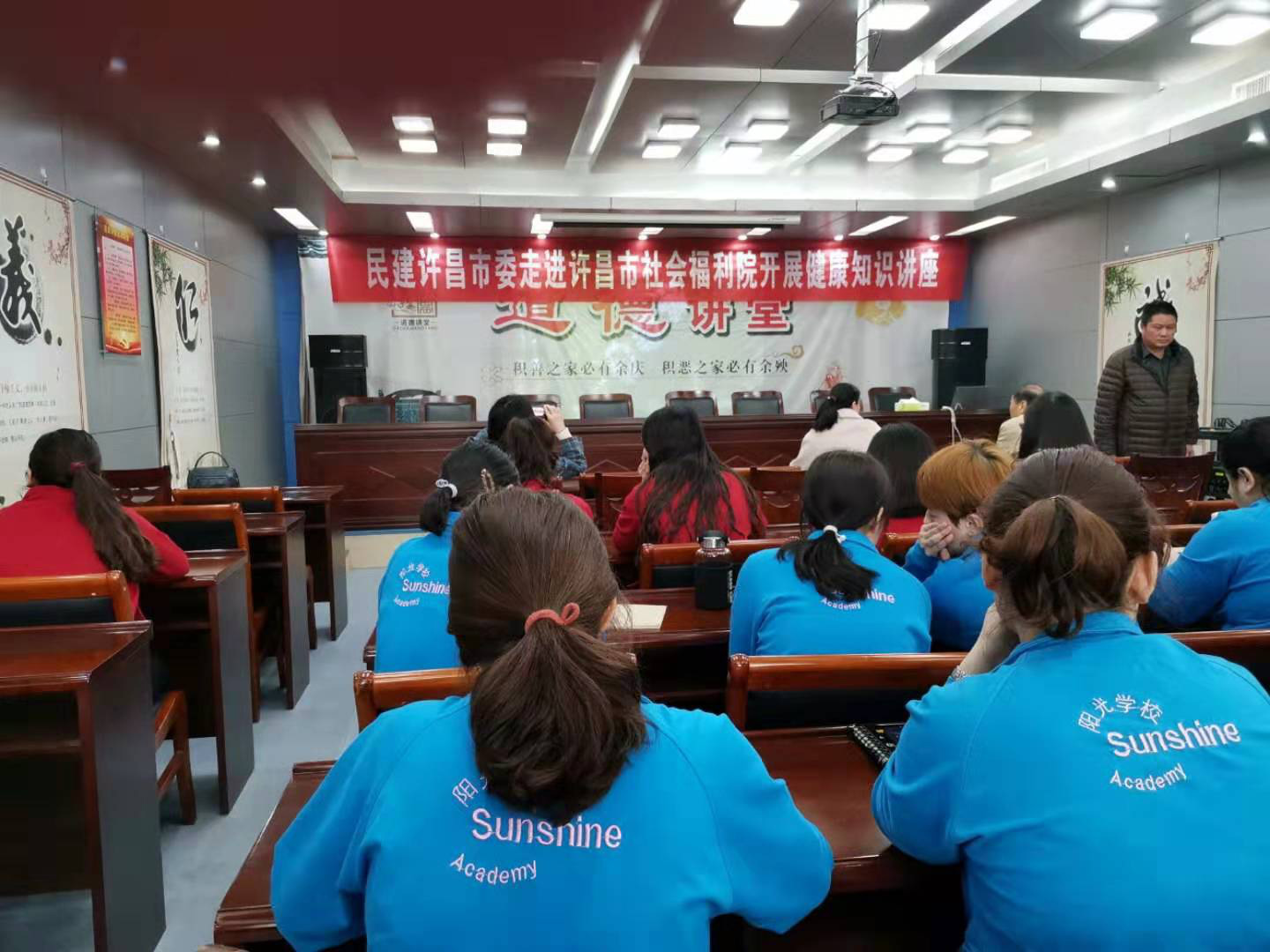 许昌市社会福利院是许昌市民政系统先进单位,多项工作居于全省民政系统前列,该单位女同志占大多数,为迎接“三八”妇女节的到来,3月6日上午,民建许昌市委组织会内医疗专家,走进许昌市社会福利院,开展“女性健康知识与保健”知识讲座,为社会福利院人员送去一份特殊的礼物。讲座由民建许昌市委三支部主委、许昌市中心医院主任医师朱建春讲授。
