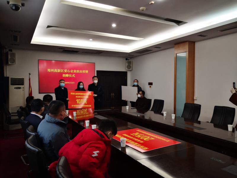 2月2日下午,由民建河南省直12支部发起的共同行动,支部会员陈一敏所属企业“河南省礼姑娘网络科技有限公司”向河南省慈善总会郑州高新区分会捐赠10万元现金,点对点,捐赠高新区在抗击疫情辛勤工作的环卫、安保、民警等一线工作人员。以表达对他们的崇高敬意和诚挚感谢!本次活动由高新区管委会与慈善会组织管委会王主任牵头,民建河南省直12支部主委娄延川、副主委赵敏助力,会员暨省政协委员陈一敏、礼姑娘总裁张菲菲等4家10万元以上捐赠企业共同参与?;疃玫矫窠ㄊ∥缁岱翊罹ΤぶС趾托?。