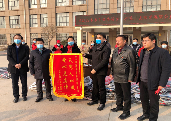 1月20日,民建新乡市委主委姬泓,副主委邓志胜、高炬带领企业委员会和机关二支部到红旗区小店镇人民政府举办“送温暖公益行活动”,为环卫工工友们送去价值2万元的160件棉服。