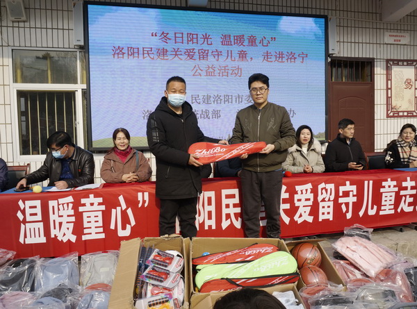 1月20日,新年伊始,民建洛阳市委组织新会员来到洛宁县长水乡王伙小学,开展关爱留守儿童扶贫捐赠活动,民建洛阳市委专职副主委张颖政,洛宁县委统战部部长张清涛,民建洛阳市委宣传联络委主任常志玉等参加活动。