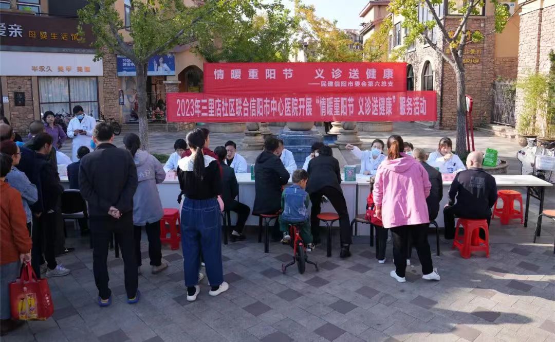 10月20日上午,民建信阳市委会第六总支部联合信阳市中心医院、浉河区三里店社区在正商红河谷小区开展“守护健康,服务群众”专家义诊进社区活动,组织眼科、心血管内科、骨科、内分泌科、神经内科、妇科及儿科专家团队为小区居民提供免费测血压、测血糖、健康咨询、疾病筛查、科普宣教等服务,为小区居民送上重阳节的祝福。民建信阳市委会委员、信阳市中心医院副院长张明鸿,民建信阳市委会委员祝良桂,第六总支主委任庆梅等参加活动。