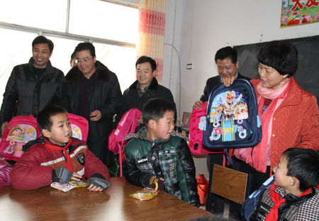 民建漯河市委不忘担当社会责任,响应市委、市政府号召,捐款捐物1.5万元,购置电脑、课桌、椅子、书柜、沙发、文体器材、书包文具、儿童食品等物品,在舞阳孟寨镇周柴小学创建了具有亲情视频区、谈心谈话区、图书阅览区、文体活动区等功能的漯河市“示范留守儿童之家”。