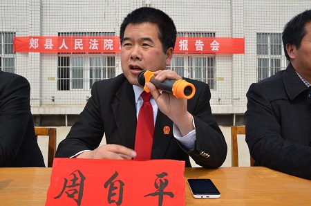 3月13日下午,民建会员、郏县法院少审庭庭长周自平来到郏县长桥镇一中,为师生门上了一堂生动的法制科。