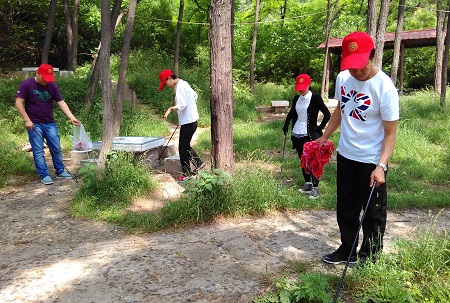 近日,民建济源市委组织10余名同心志愿者到济源市坡头镇开展清洁环境卫生活动。会员们头戴小红帽,一手持垃圾袋,一手持垃圾叉,各自负责一片区域,在当地的小游园清理垃圾、清除杂草,成为小游园一道靓丽风景线?;嵩泵呛芸焱瓿闪饲謇砉ぷ?,小游园面貌焕然一新。
