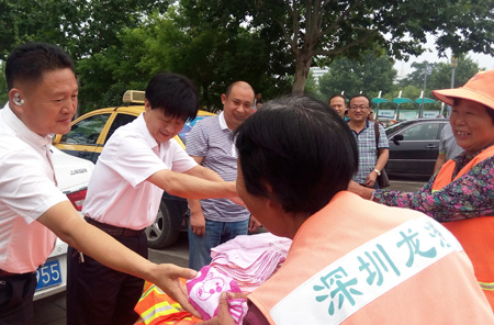 一支部会员将500套环卫服、500套扫帚垃圾斗、几千块肥皂及千余条毛巾,总价值5万余元,捐赠给城乡一体化示范区的环卫工人,环卫工人对民建会员的关心表示十分感谢。