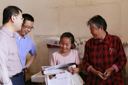 5月29日,在焦作市龙洞村蜿蜒崎岖的山路上,三个困难户家庭的小女孩迎来了民建焦作市委直属支部的爱心会员们。