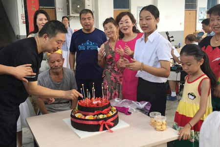 8月14日,民建洛阳市西工总支三十余名会员,带着空调、蛋糕、面包、生活用品等慰问品来到西工区红山乡敬老院开展主题为“我给老人过生日”活动,向老人们送去温暖和欢乐。