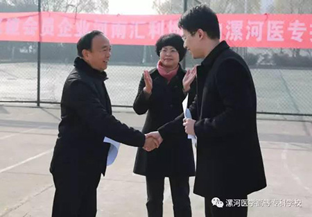 2016年12月16日上午,民建会员企业河南汇利地产有限公司向漯河医学高等专科学校捐赠体育用品。漯河市政协副主席、民建漯河市委主委胡新峰出席相关活动。