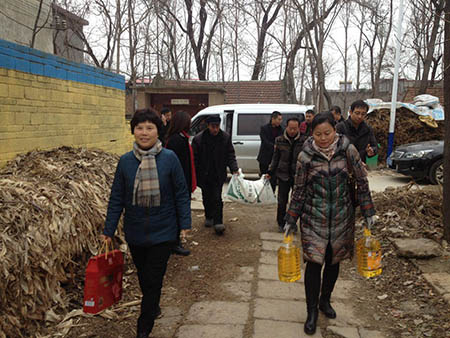 2016年12月24日上午,在民建漯河市委带领下,民建漯河市郾城总支12名会员冒着严寒,到郾城区李集镇密桥村、陈东村看望困难群众。