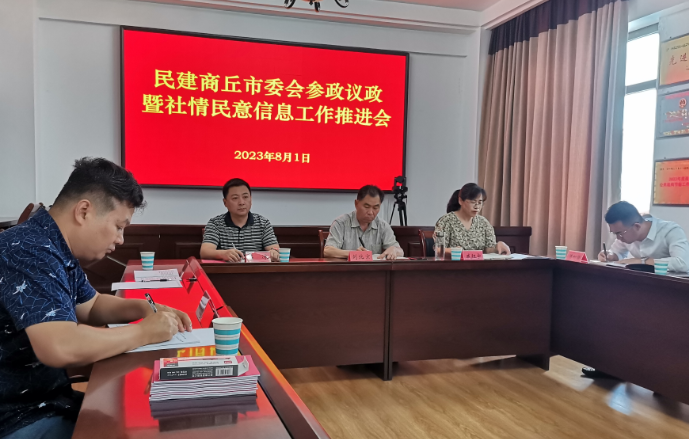 为推动“凝心铸魂强根基、团结奋进新征程”主题教育走深走实, 8月1日,民建商丘市委会组织召开参政议政暨社情民意信息工作推进会。商丘市人大常委会副主任、民建市委会主委刘北京出席会议并讲话,市委会秘书长戚征宇主持会议,部分市委委员及参政议政骨干会员参加会议。