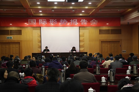 本次报告会邀请了郑州大学博士生导师余丽教授作“国际体系转型与中国外交新特点”的报告。余丽教授见解独特、内容新颖,她以专业、敏锐的视角解读了当今国际体系转型中的国际形势和中国外交的新形势、新特点。大家纷纷表示报告会生动精彩,内容既有理论高度,又紧密联系当今国际形势,受益匪浅。