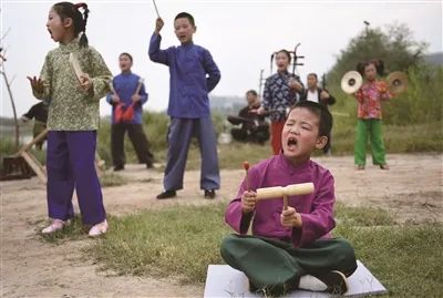 9月27日,陕西省渭南市潼关县秦东镇滨河小学学生在黄河岸边练习“黄河老腔”。新华社发 邹竞一 摄