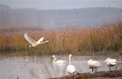 初冬时节,大批天鹅陆续南迁来到河南省三门峡市黄河湿地栖息越冬。新华社记者 郝 源 摄