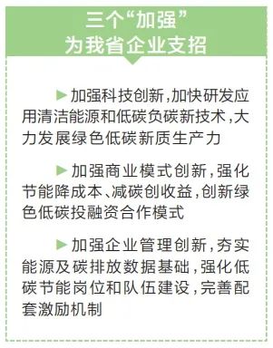 企业是实现“双碳”目标的关键主体。我省企业如何加快转型发展,抓住新形势下的新机遇,勇做新时代的弄潮儿?