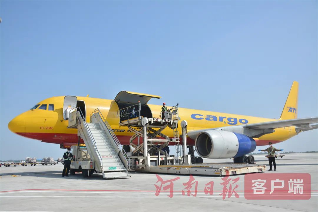 在河南郑州航空港上空,飞机来往穿梭,其中也有着陈氏阳光高端进口水果包机的身影。