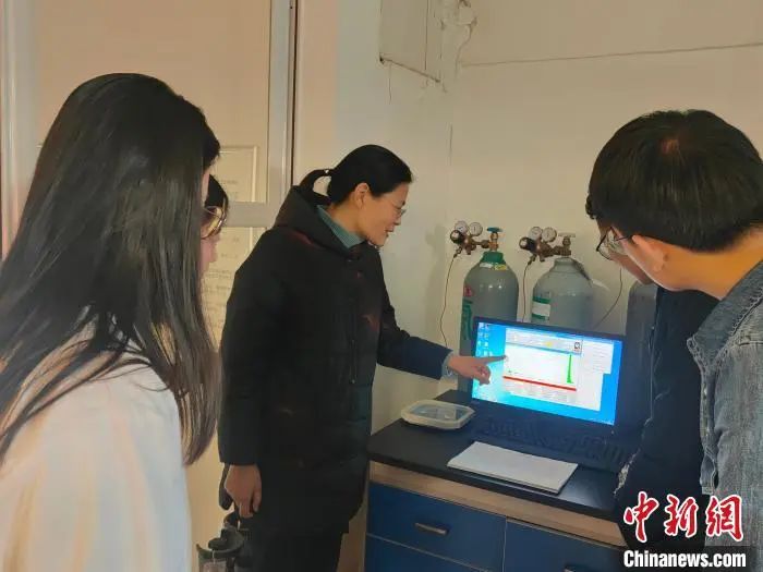图为张瑞芹在实验室里指导学生进行大气采样数据分析 杨大勇 摄
